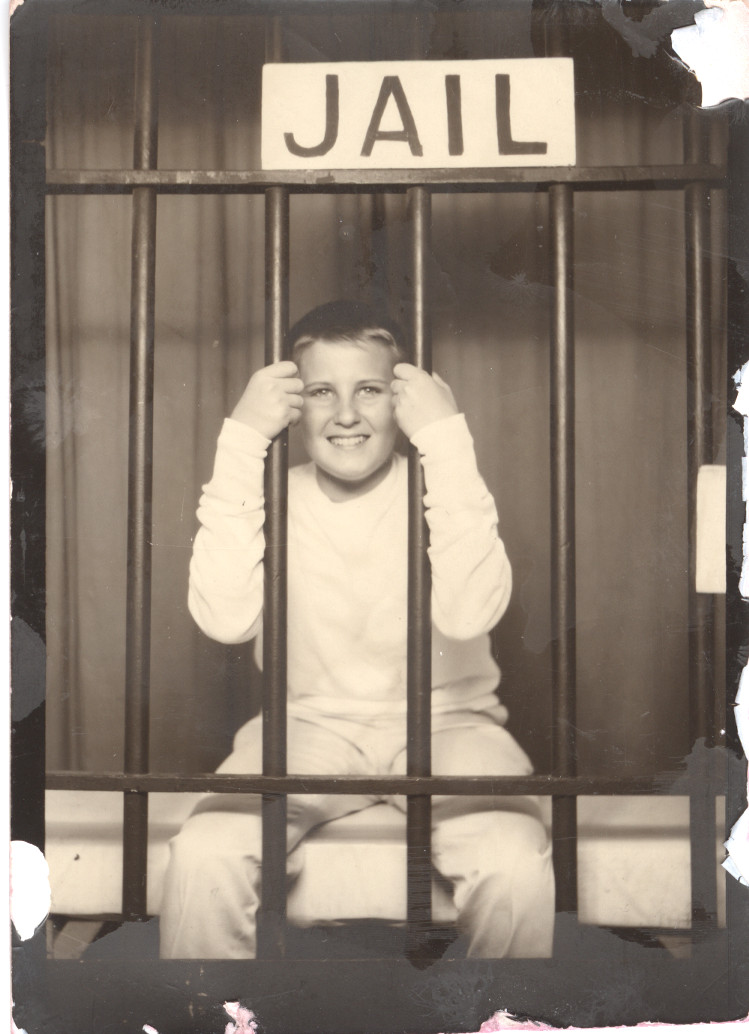 - Sepia-toned photo of Doug in "Jail" at the Scioto County Fair.