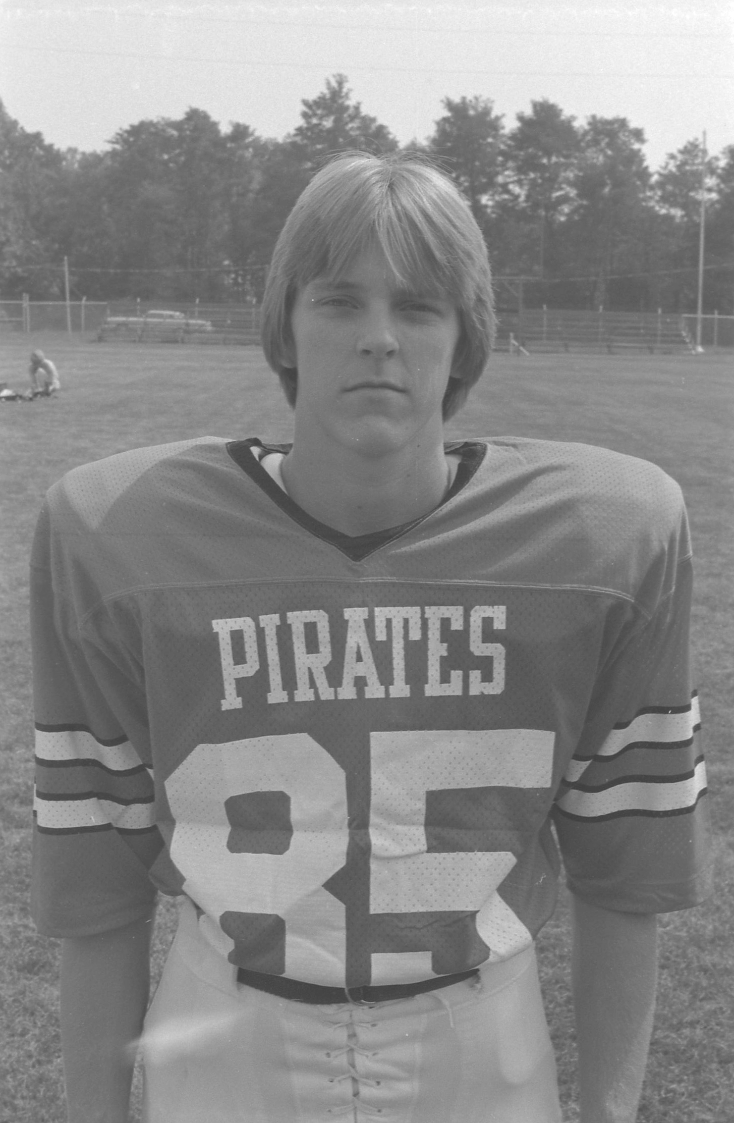 - Black and white photo negative of 1977 Wheelersburg High School Football player, #85 Rob Cunningham.