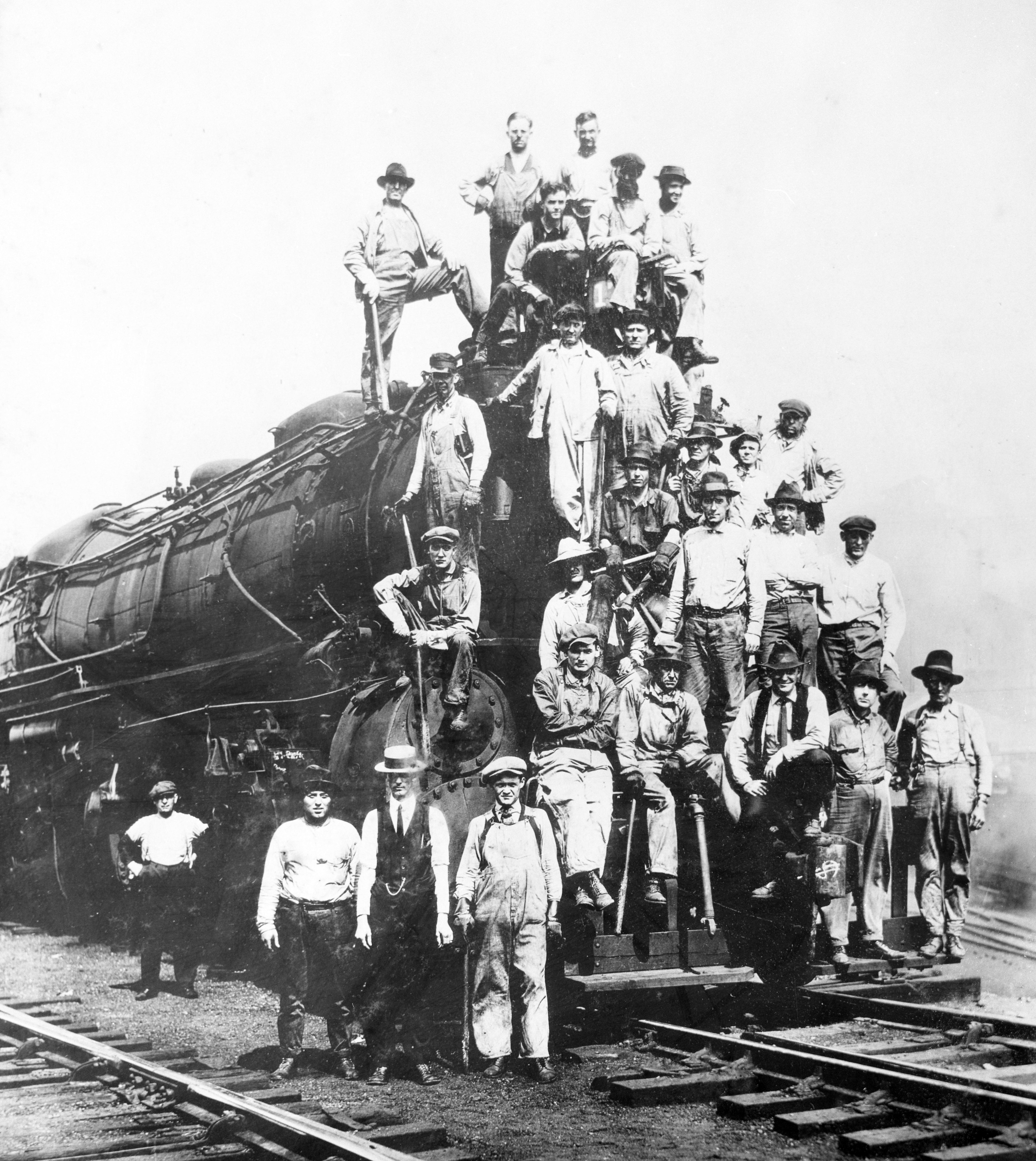 - Group of Men Sat on Train Engine