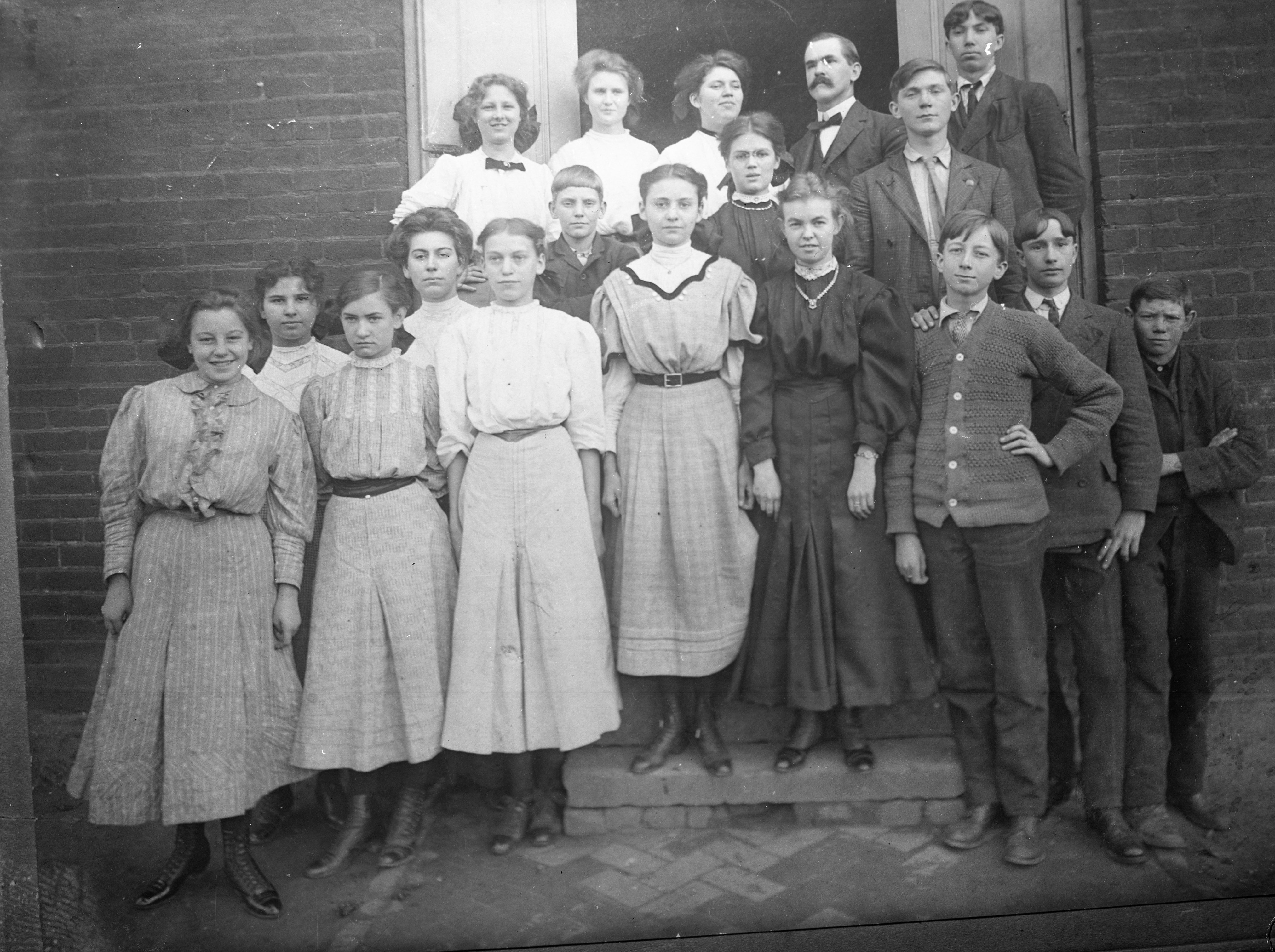 - Black and white photo negative of a group of students at the Sciotoville Normal School.