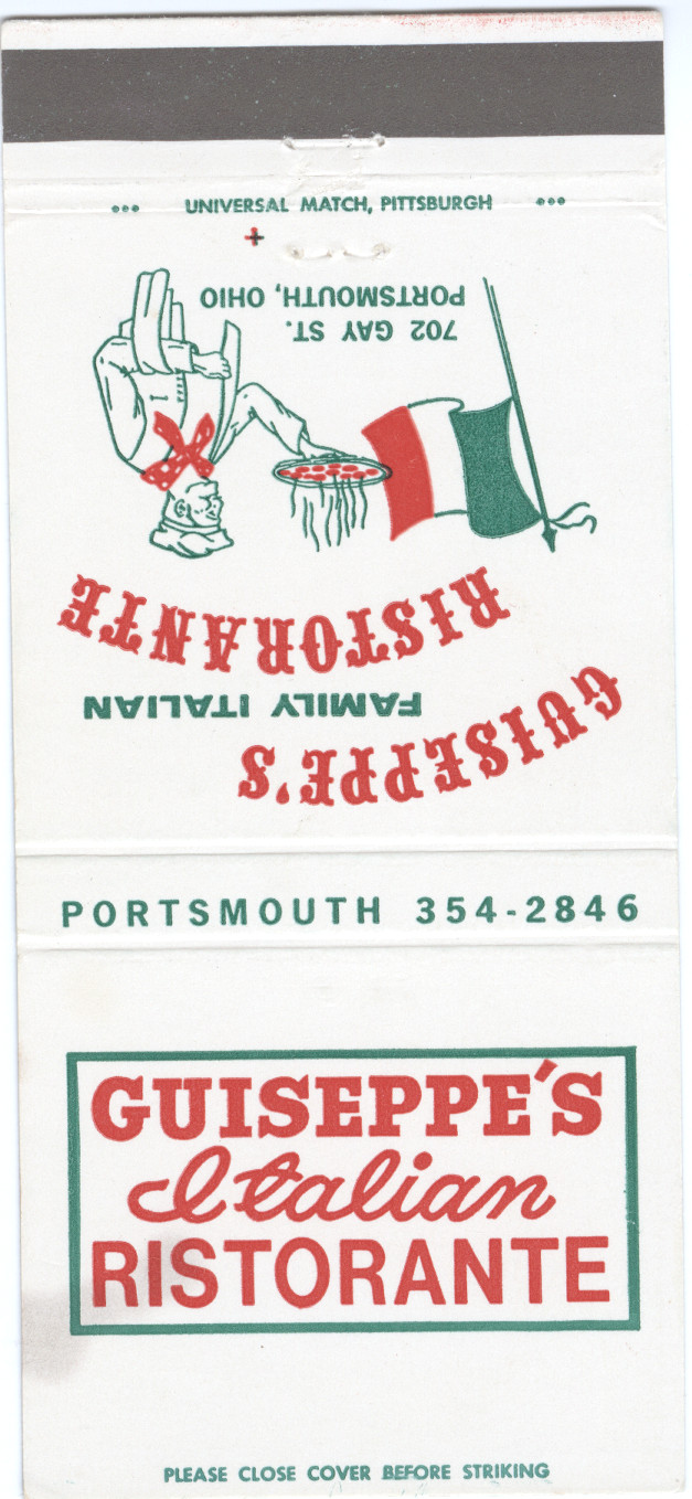 Universal Match, Pittsburgh, PA, “Guiseppe's Family Italian Ristorante,” Scioto County Public Library Local History Digital Collection, accessed December 16, 2025, https://sciotolibrary.org/history/items/show/32182.