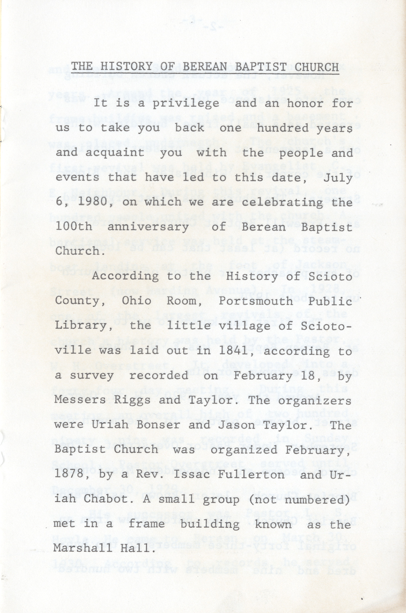 Unknown, “Berean Baptist Church "100 Years, 1880-1980",” Scioto County Public Library Local History Digital Collection, accessed December 15, 2025, https://sciotolibrary.org/history/items/show/32184.