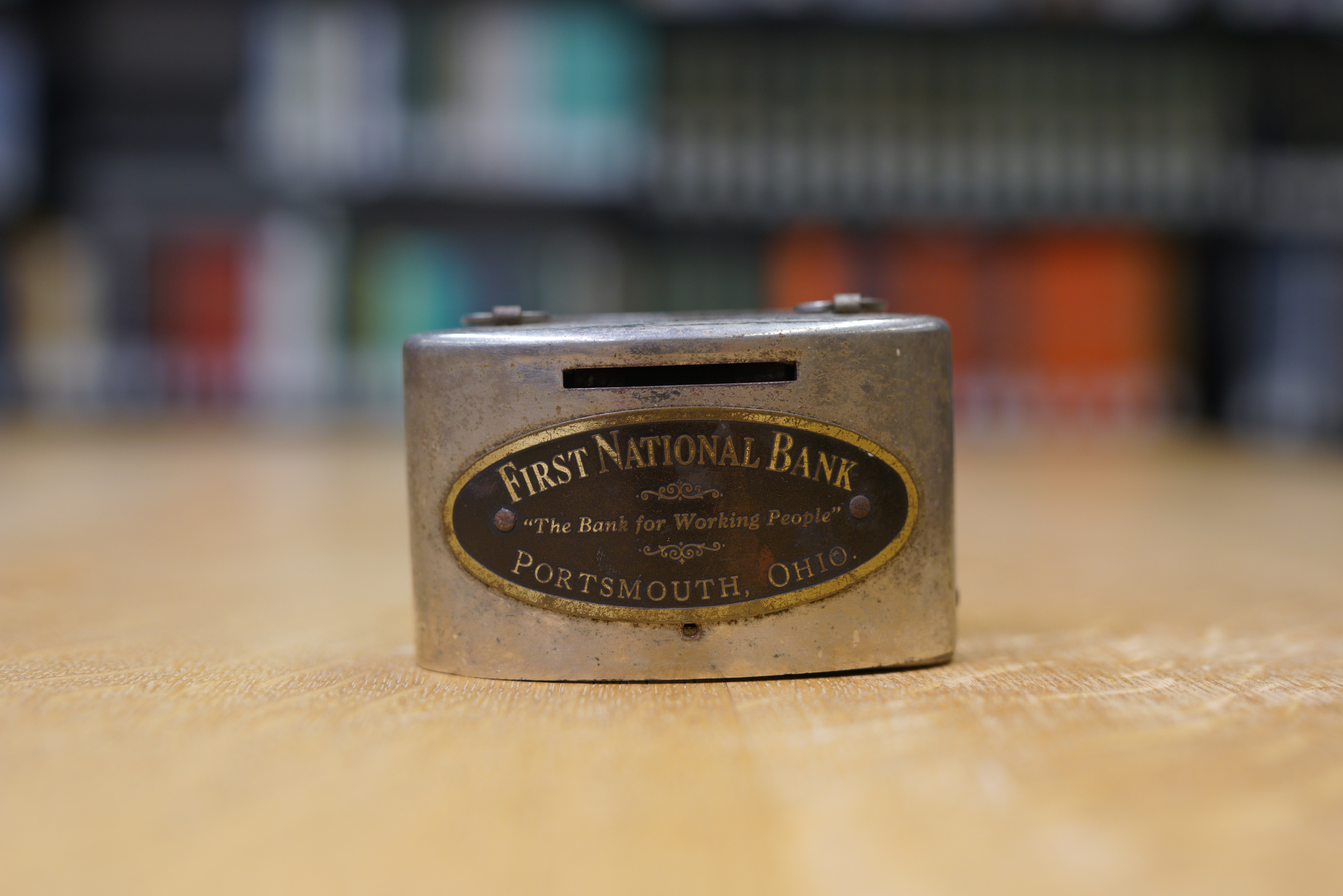 Unknown, “First National Bank Coin Bank,” Scioto County Public Library Local History Digital Collection, accessed December 15, 2025, https://sciotolibrary.org/history/items/show/32190.