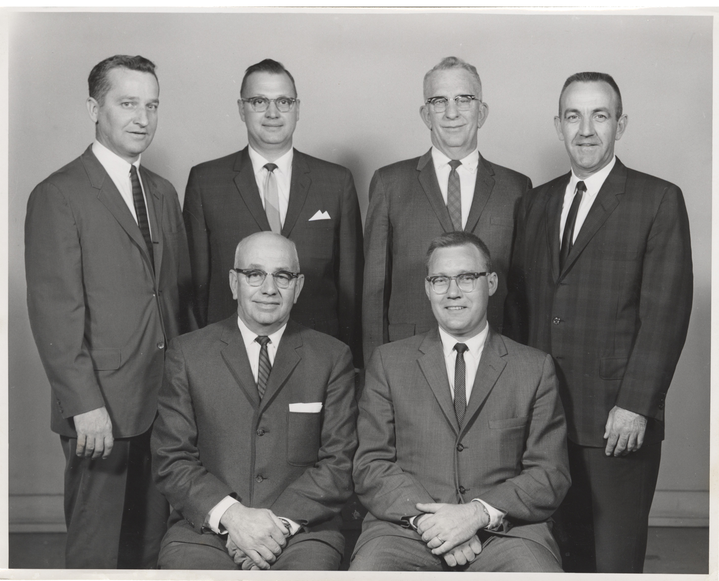 - Black and white group photo of the Scioto County Auto Dealers Association.