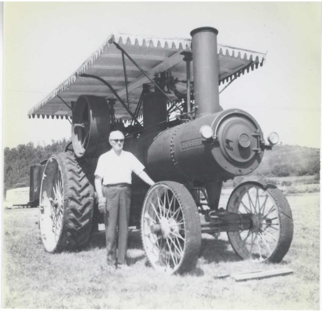 - Black and white photo image of Ray Litteral standing by his "old-fashioned steam engine tractor" at the Pioneer Village in Wheelersburg. Getting ready for the Wheelersburg Sesquicentennial Parade.
