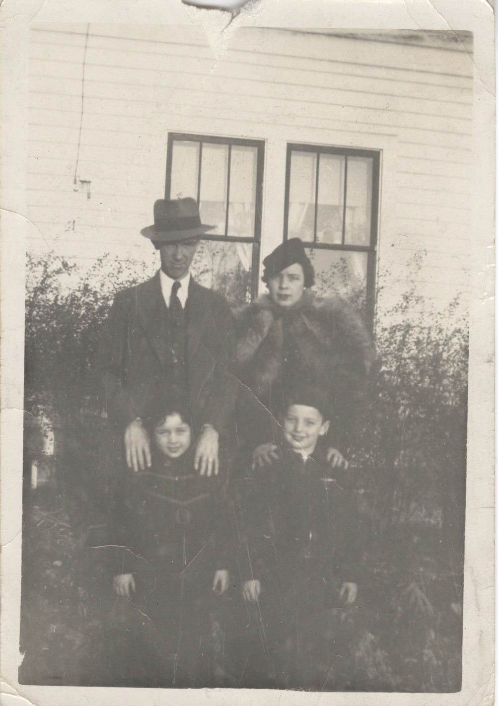- Black and white photo image of Charles and Etta Henry with their children Betty and Skip Keyser. Writing on back says they are at Mahaffey's.