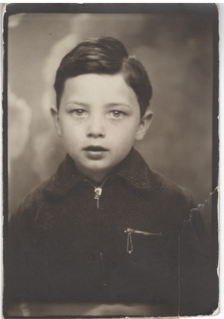 - Black and white school photo image of Raymond "Skip" Keyser. Aged 6.