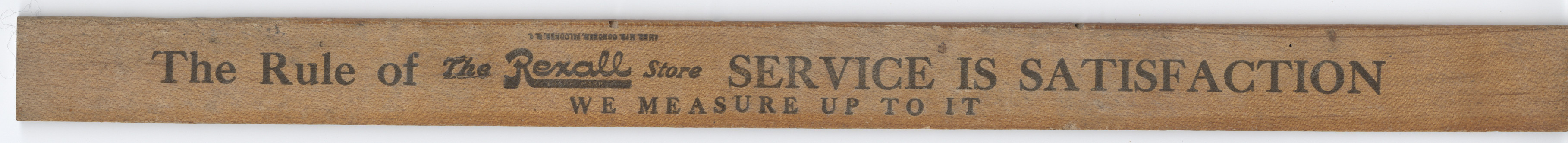 - Wooden 12 inch ruler with black printer. Wurster's, The Rexall Store, was located at 419 Chillicothe Street.