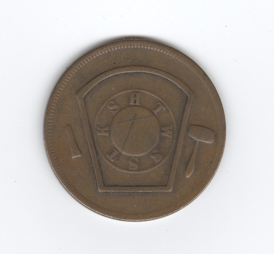 - Bronzed, light-weight token for the Mt. Vernon Masonic Chapter. It was chartered on October 18th, 1839. Token was worth one penny. Slightly worn.