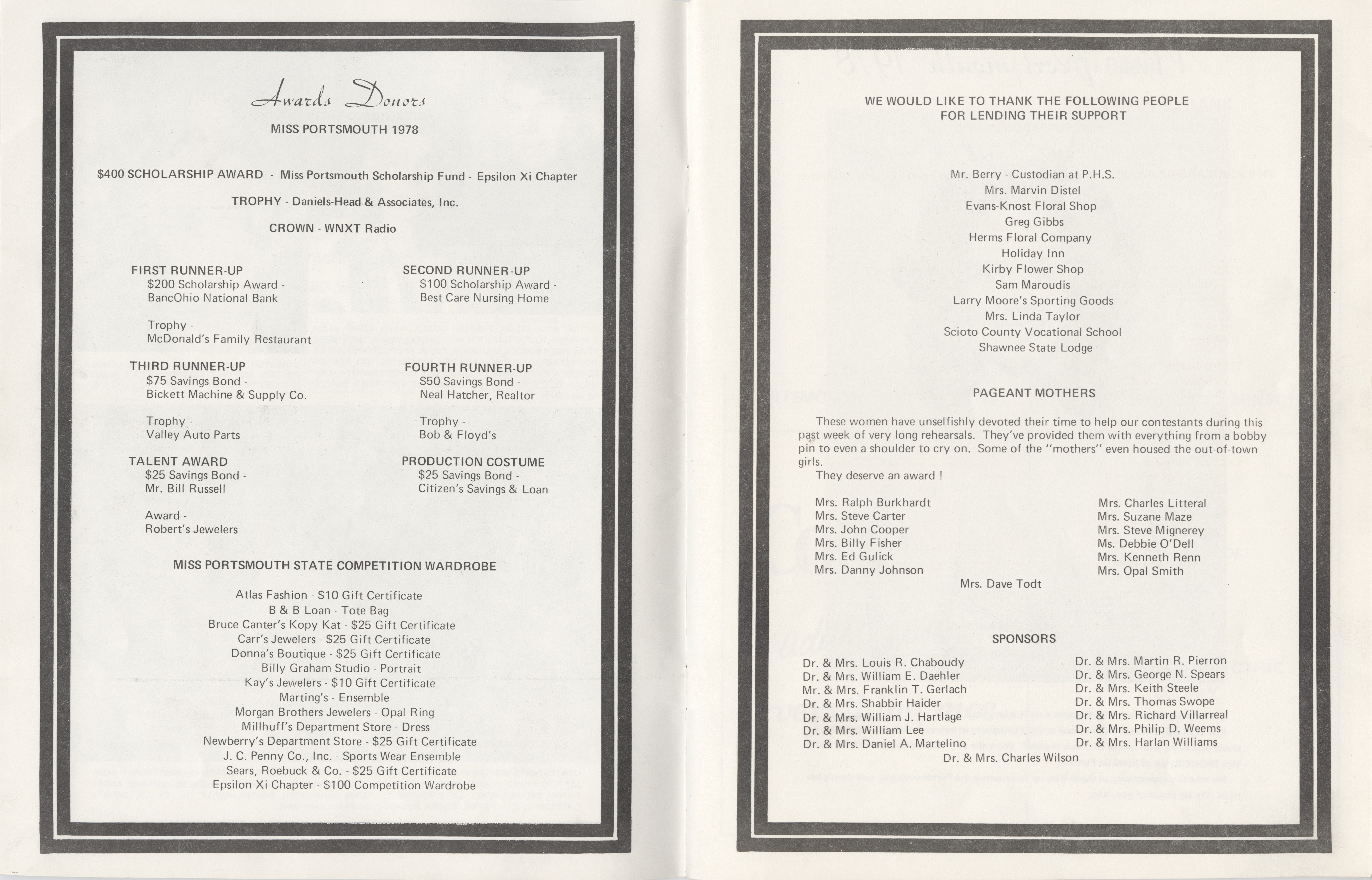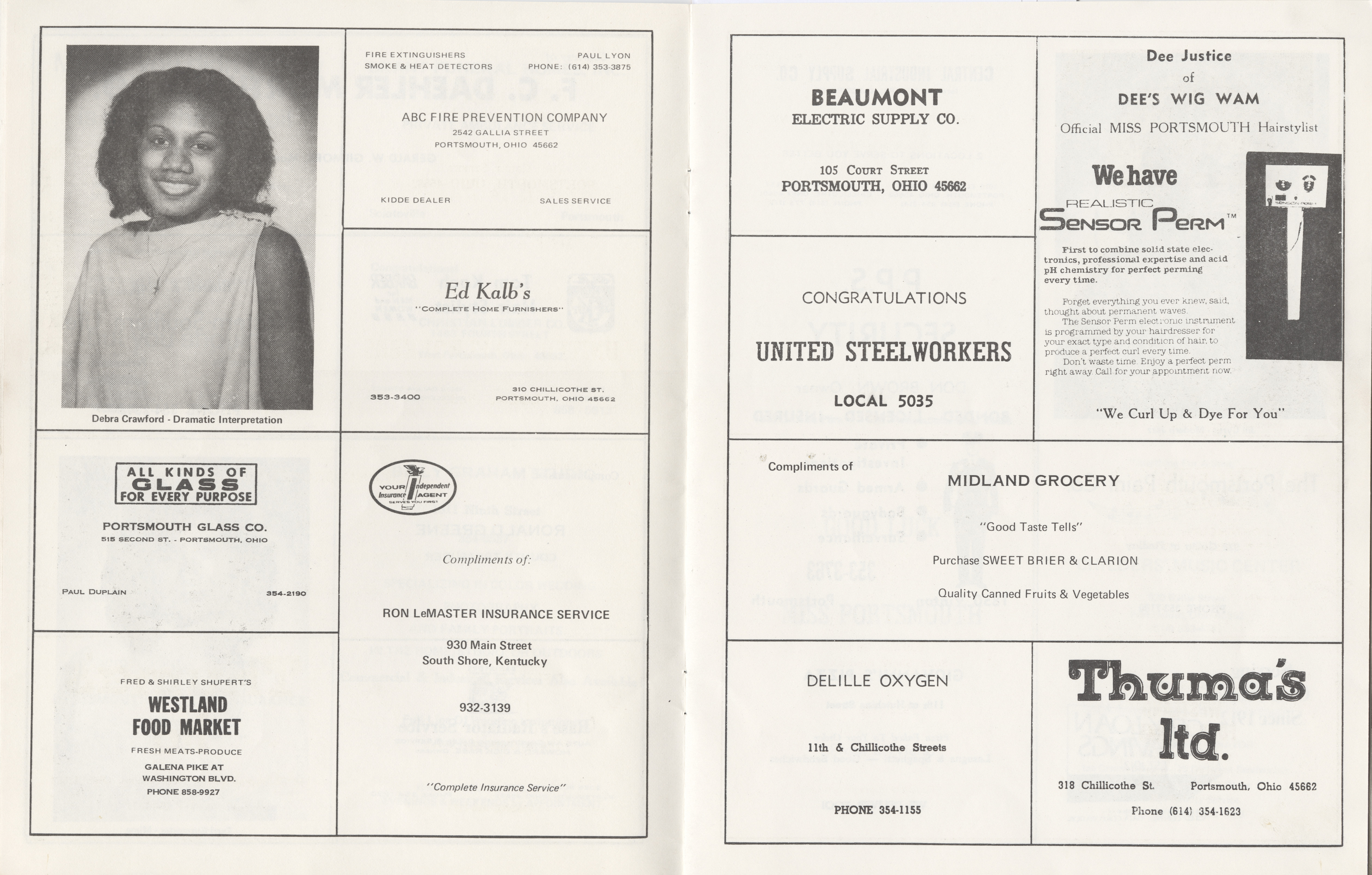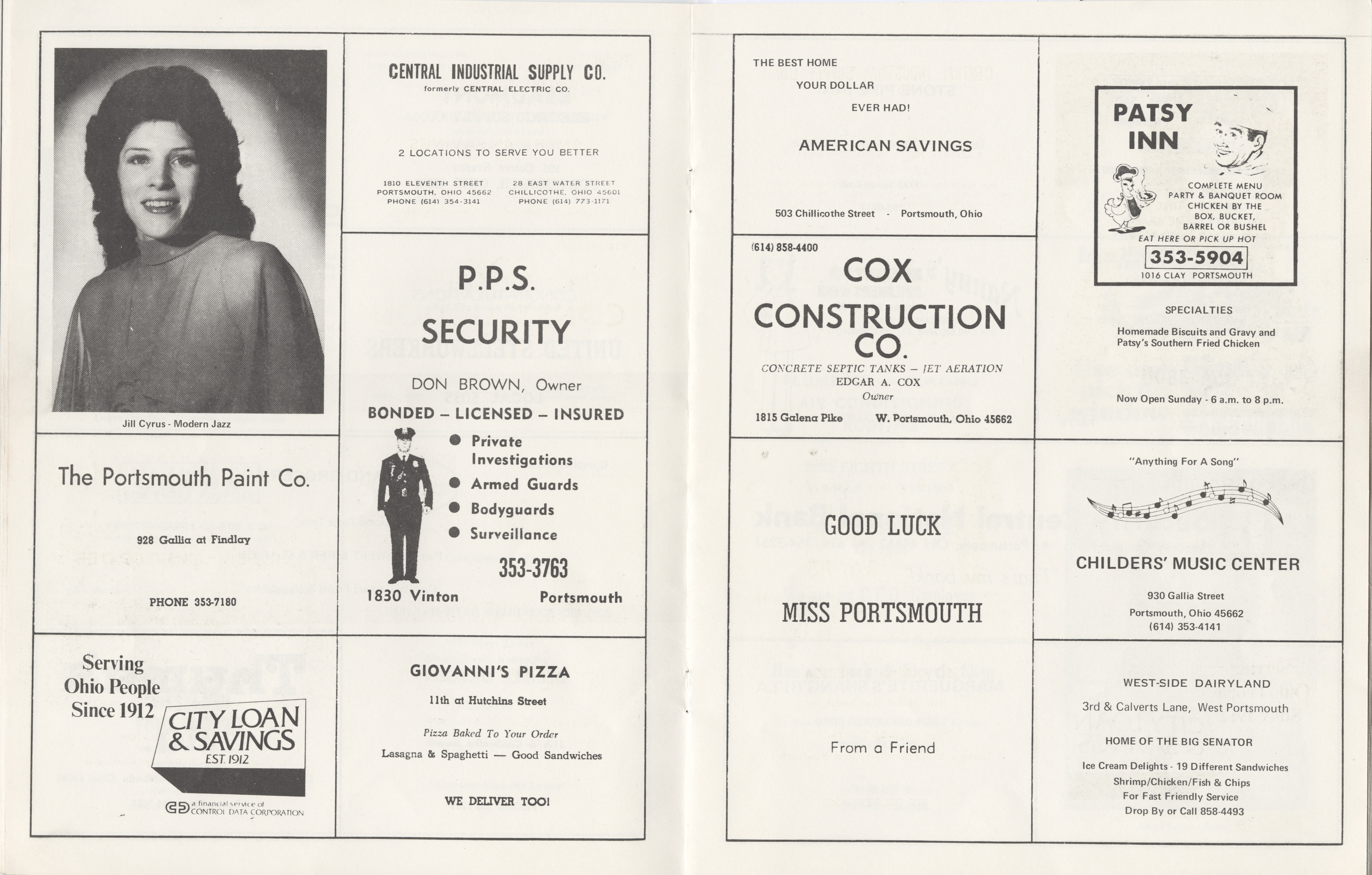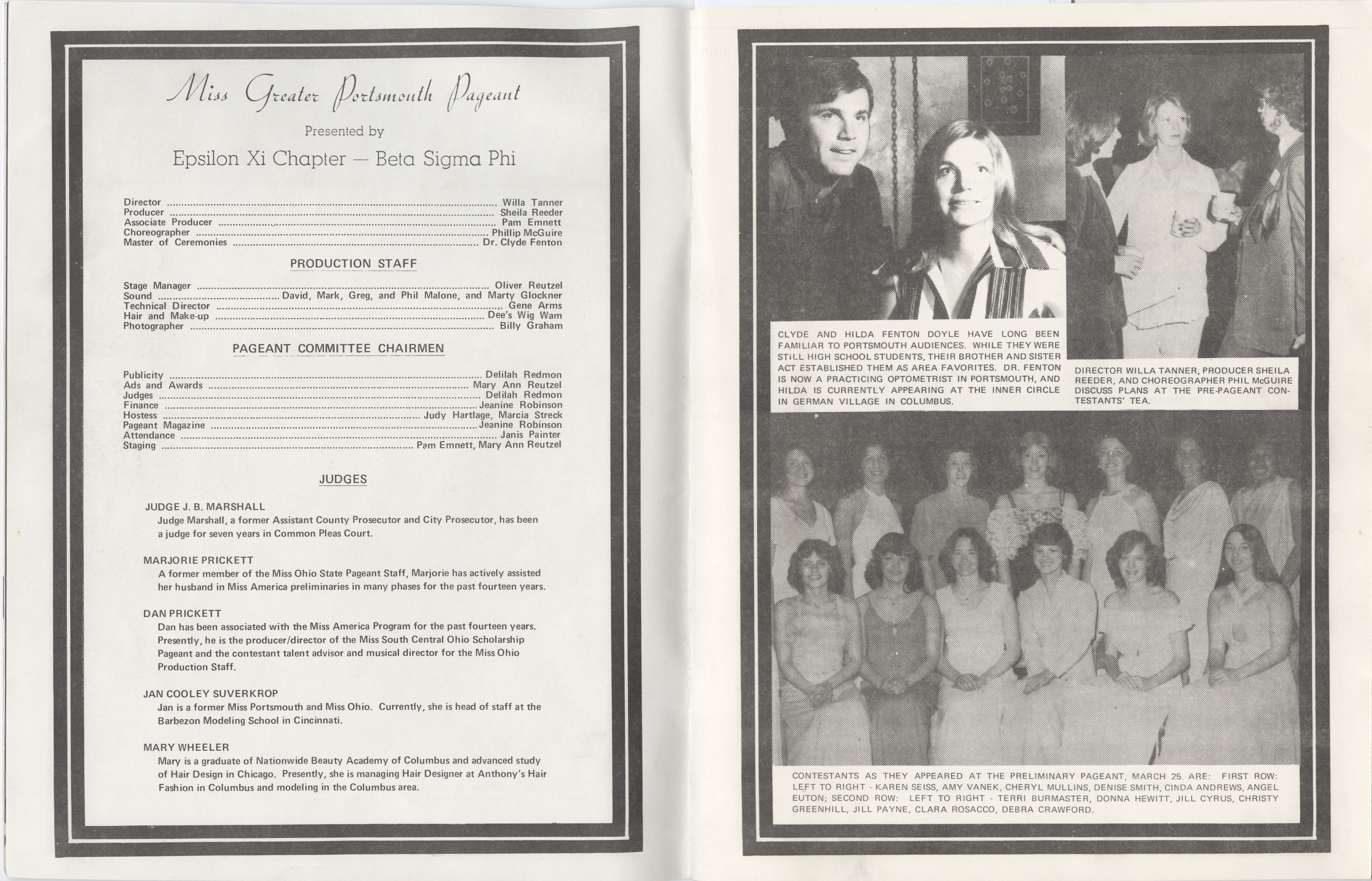 “Miss Greater Portsmouth Area Scholarship Pageant,” Scioto County Public Library Local History Digital Collection, accessed February 11, 2026, https://sciotolibrary.org/history/items/show/32423.