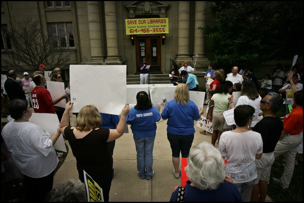 Terry Stevenson II, “Save Our Libraries Rally,” Scioto County Public Library Local History Digital Collection, accessed December 16, 2025, https://sciotolibrary.org/history/items/show/4166.