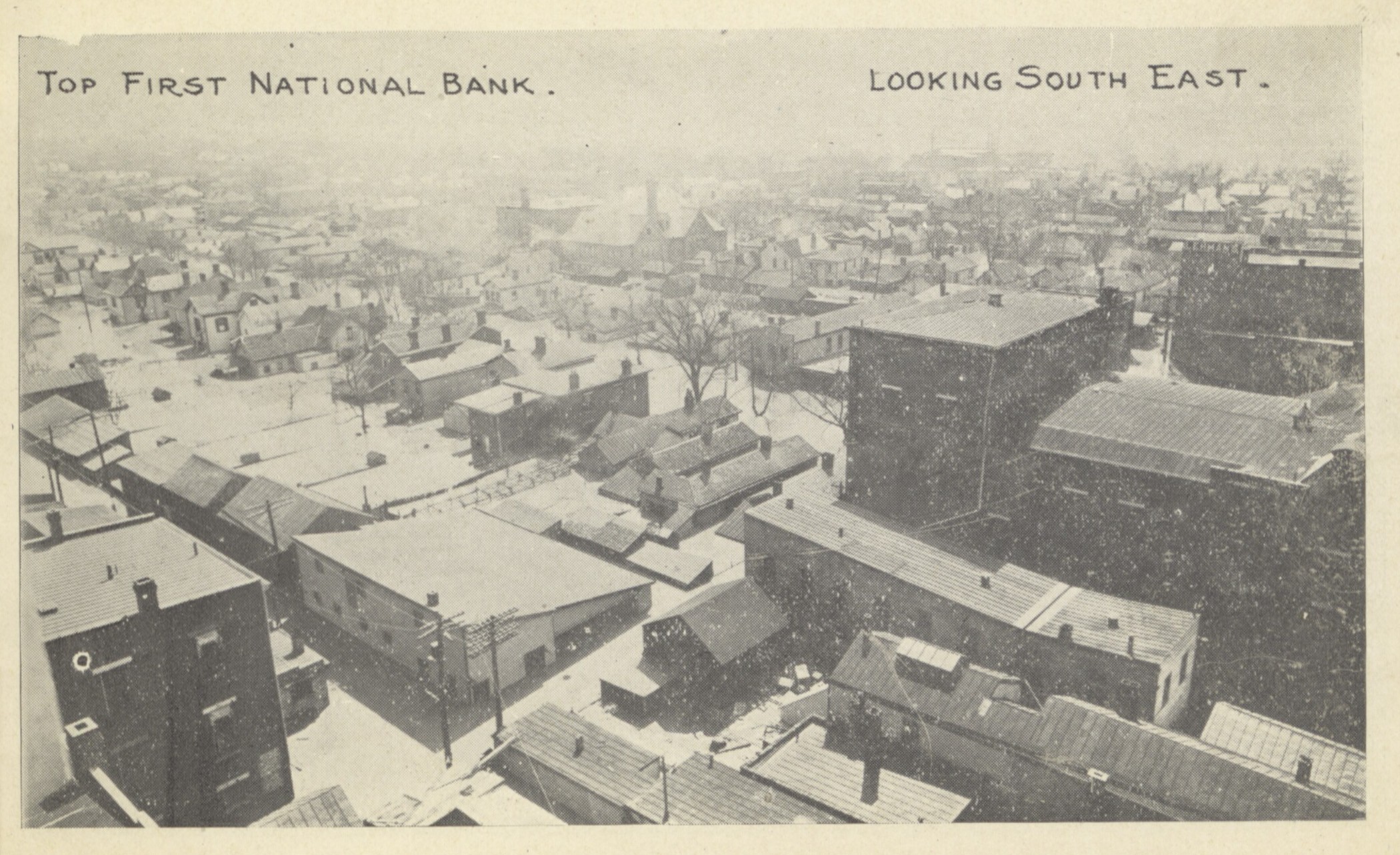 Copyright 1913, “Top of First National Bank Looking South East,” Scioto County Public Library Local History Digital Collection, accessed December 15, 2025, https://sciotolibrary.org/history/items/show/4633.