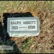- Photo image of the headstone of Ralph Abbott in Confidence Cemetery located in Brown County.