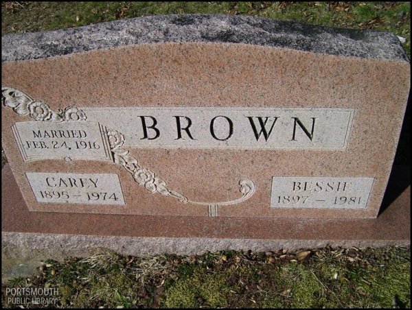 Photo image of the headstone of Bertha E. Brown in Rushtown Cemetery located in Scioto County.