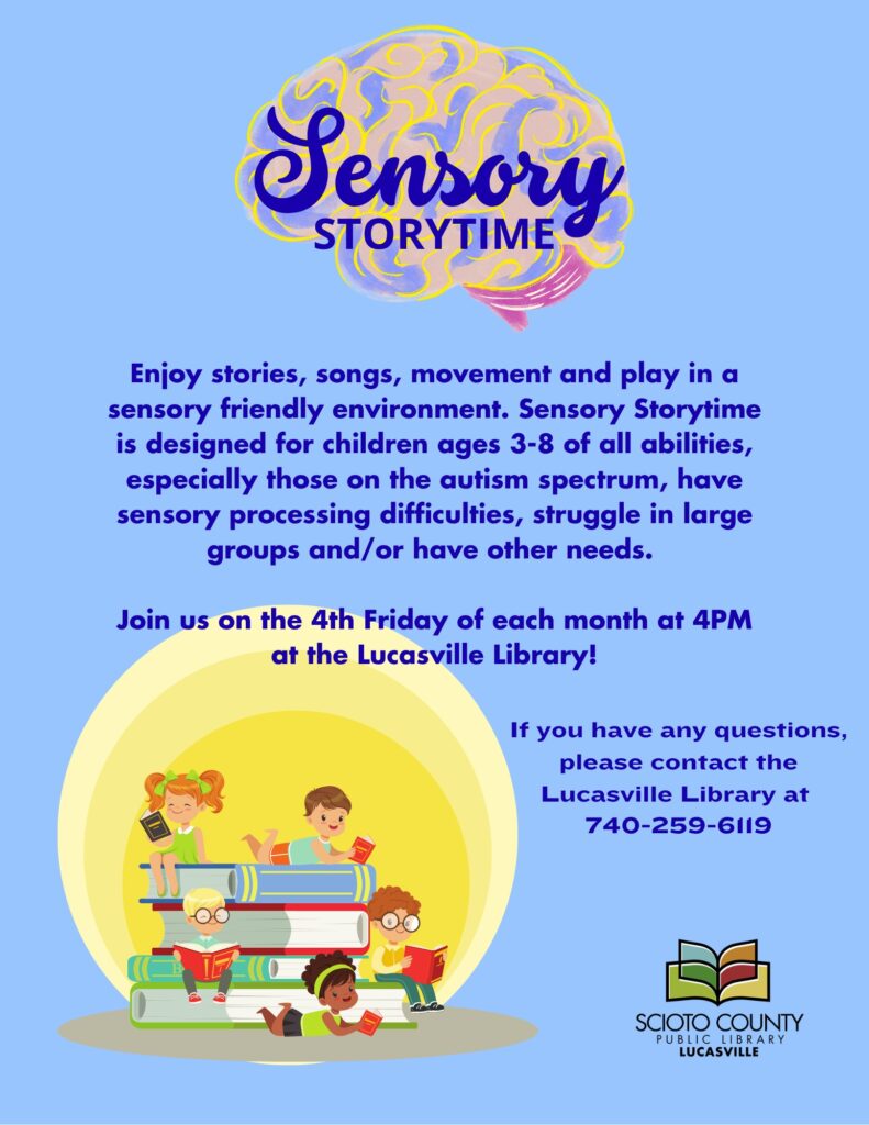 Family Story time with Sensory Play. Join us as we read, play, and craft together. The program begins at 11:00am and lasts about an hour. For more information, call the South Webster Library at 740-778-2122