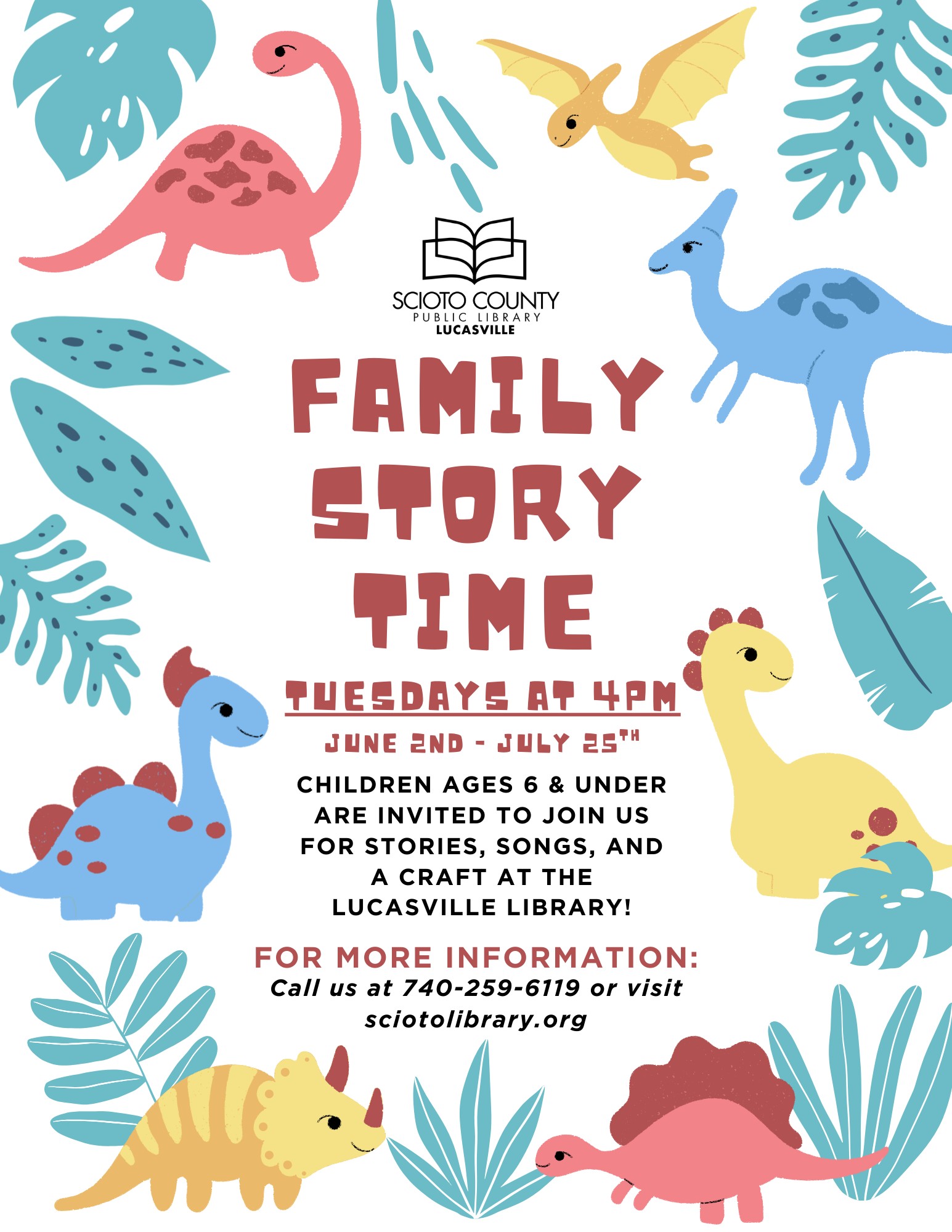 Ignite your child’s love for reading and learning by joining us at the Lucasville Library for Family Storytime! Children ages 6 and under will enjoy stories, songs, and a craft. Family Storytime takes place every Tuesday at 4pm. Please contact the Lucasville Branch at 740-259-6119 with any questions. We can’t wait to see you there!