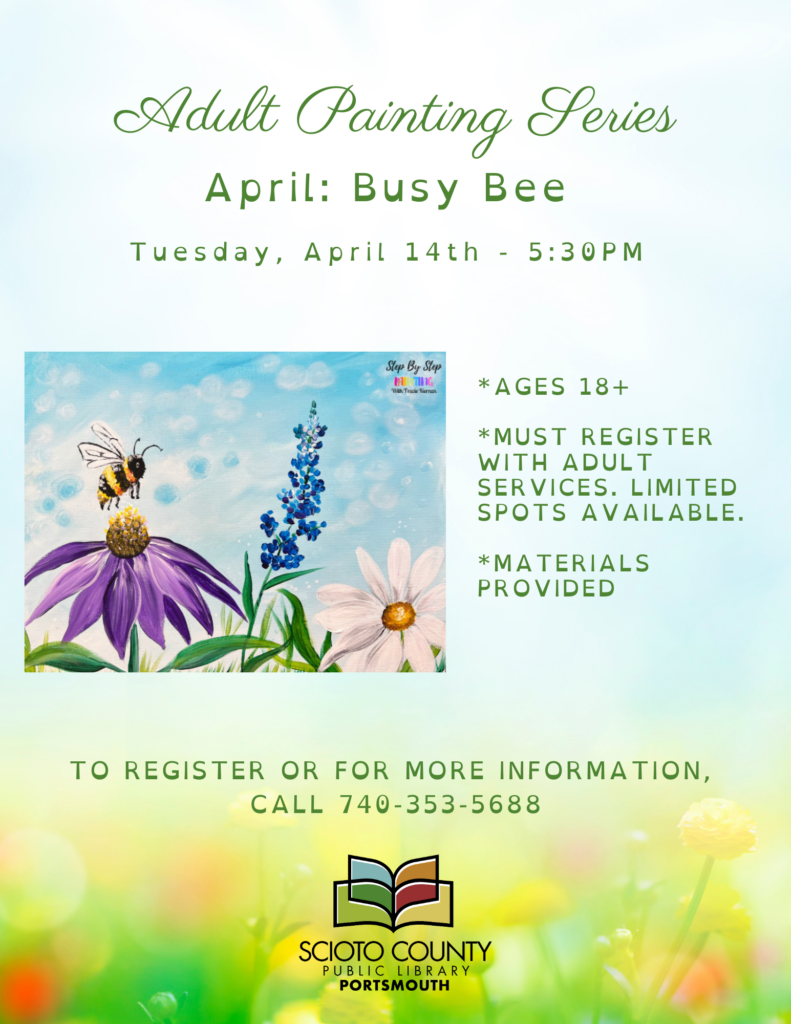 Adults are welcome to join us at the Lucasville Library on Monday, April 13th at 6pm for a craft activity as we celebrate the upcoming National Library Week! Those attending will get to create their own keepsake by making stained glass bookmarks. For more information, call 740-259-6119.