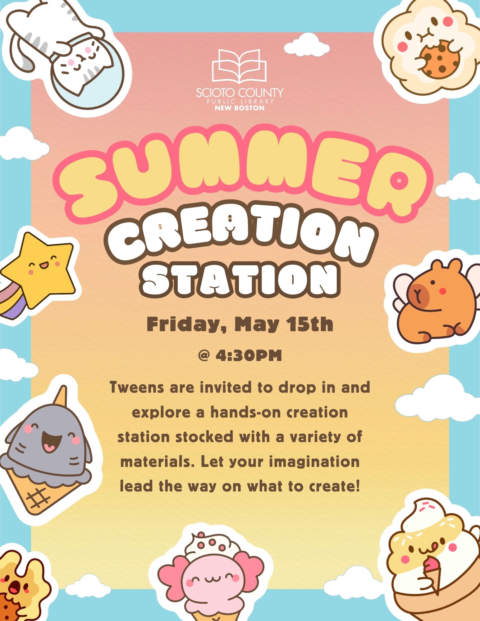 Tweens are invited to drop in and explore a hands-on creation station stocked with a variety of materials. Let your imagination lead the way on what to create.