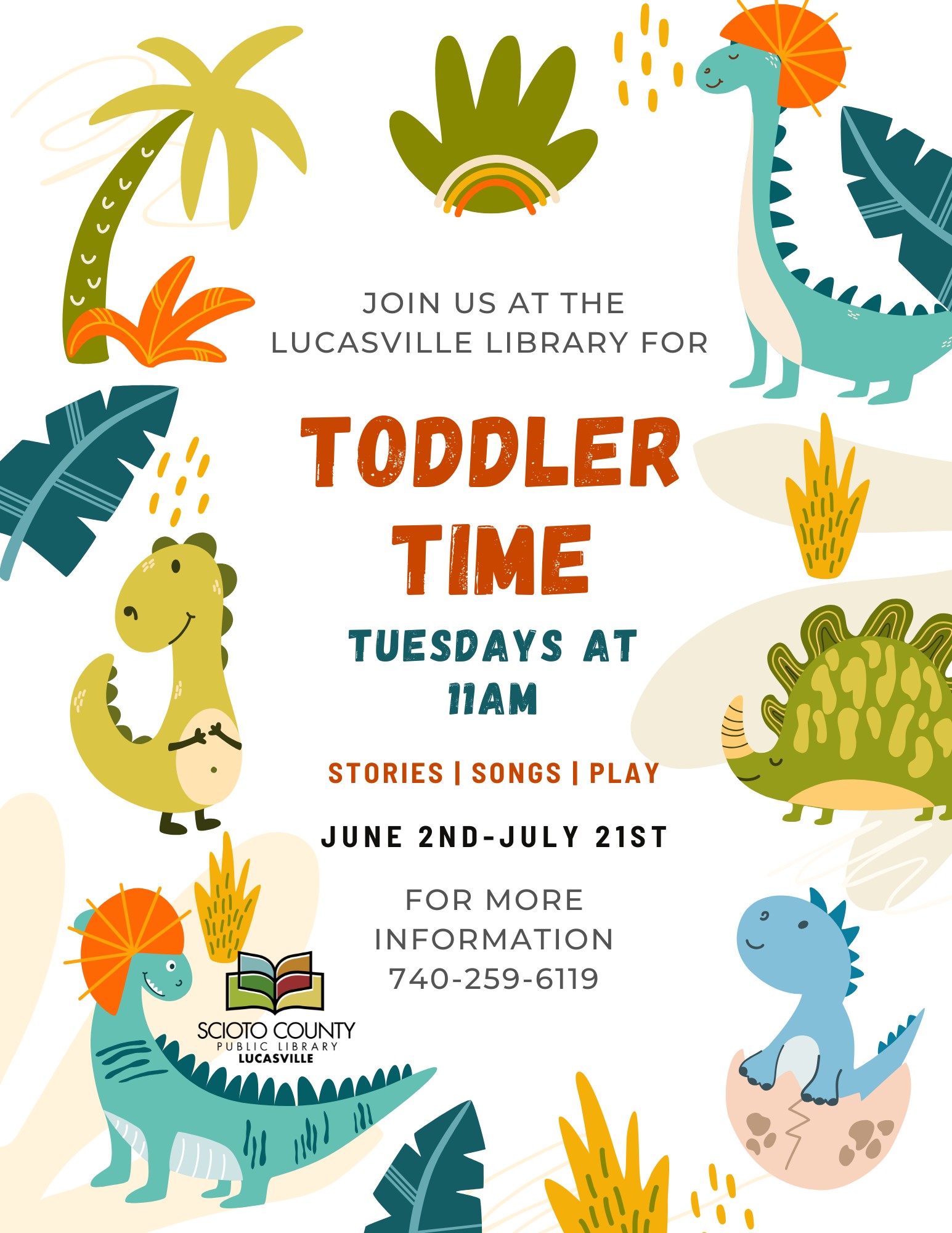 It’s never too early to begin a child’s reading journey! Toddlers are welcome to join us at the Lucasville Library for Toddler Time. Sessions are on Tuesdays at 11am and will run from June 2nd to July 21st. Come and enjoy stories, songs, and playtime. For more information, call 740-259-6119.