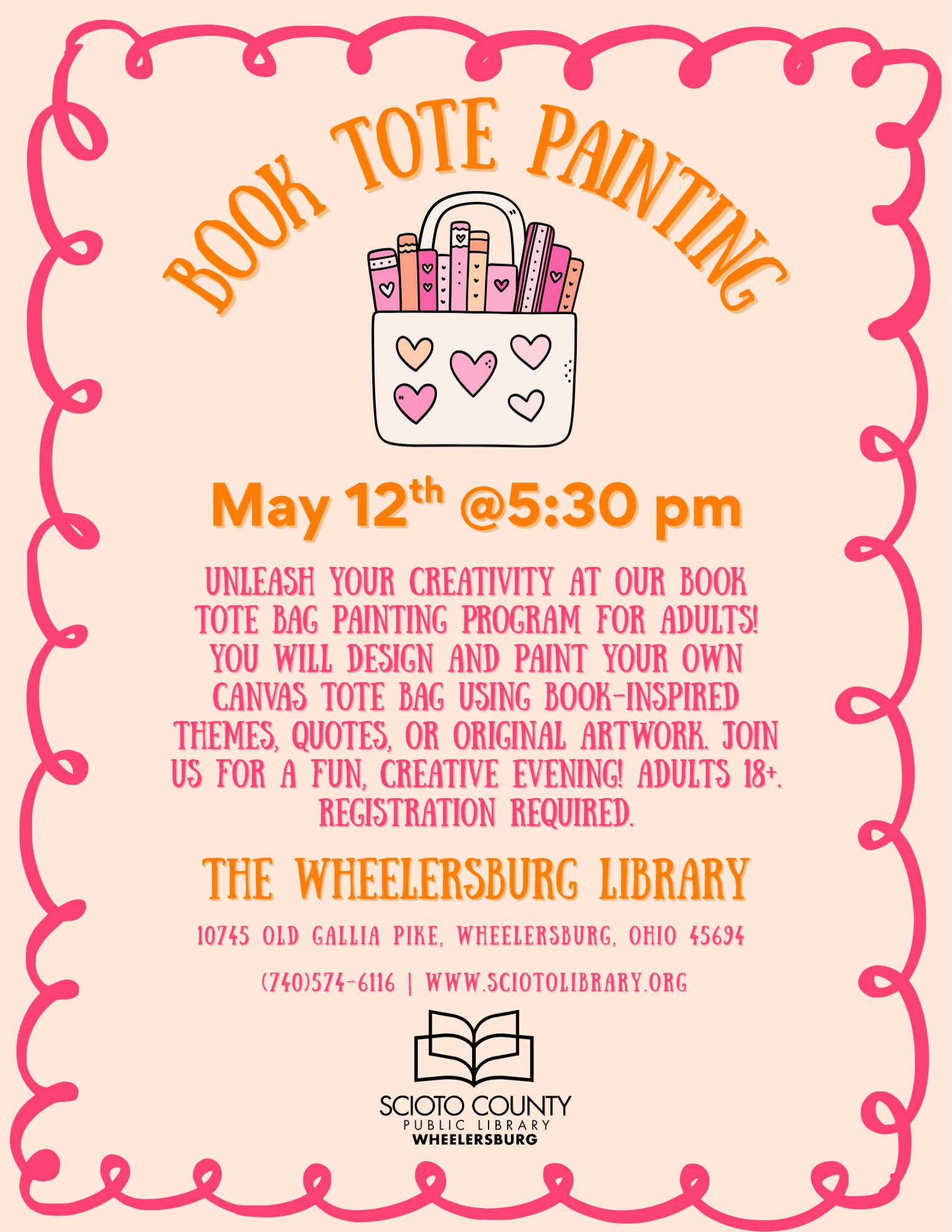 Unleash your creativity at our Book Tote Bag Painting Program for adults! You will design and paint your own canvas tote bag using book-inspired themes, quotes, or original artwork. Join us for a fun, creative evening! Adults 18+. Registration Required.