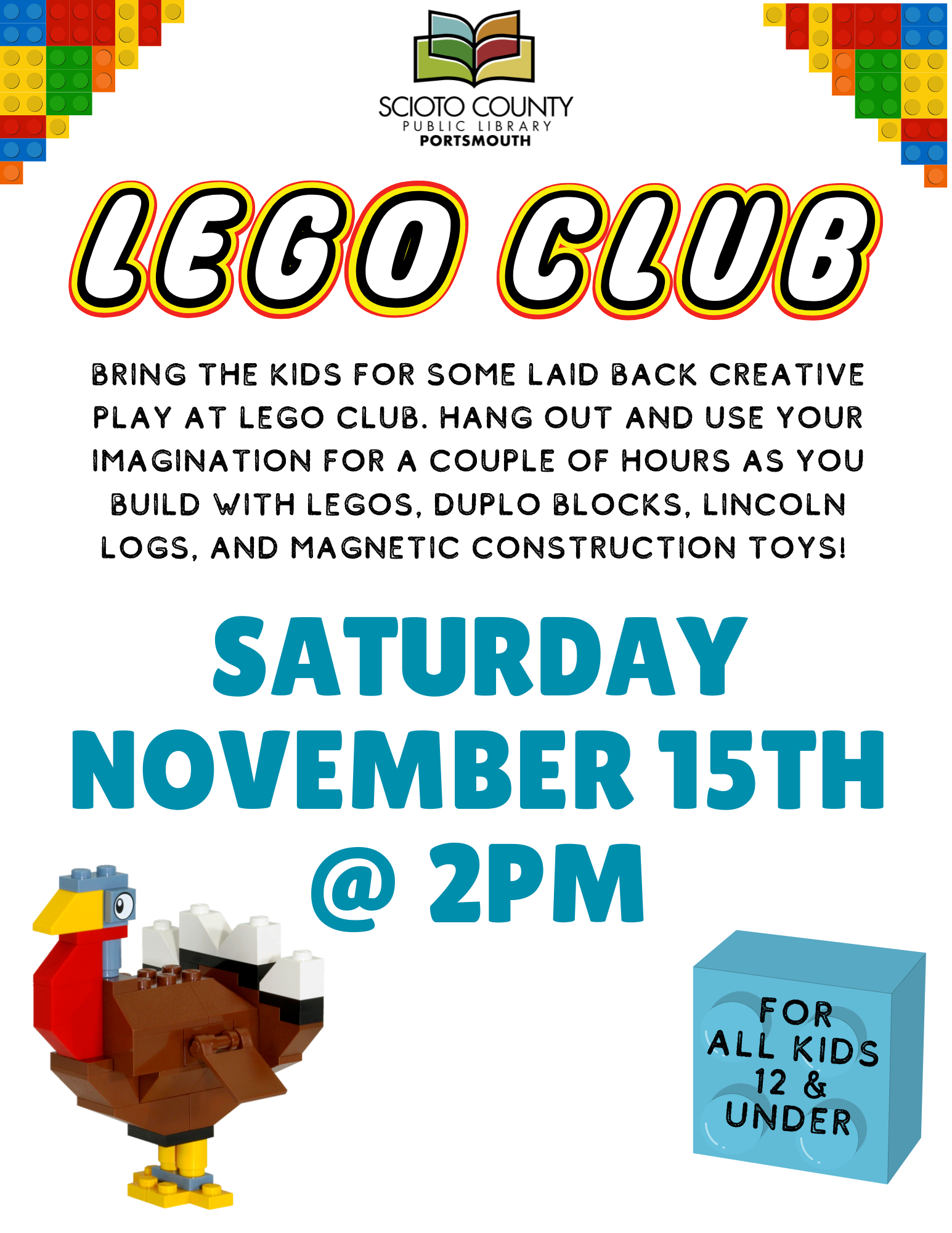 Bring your imagination to life and build to your heart’s content! For more information, call the South Webster Library at 740-778-2122.