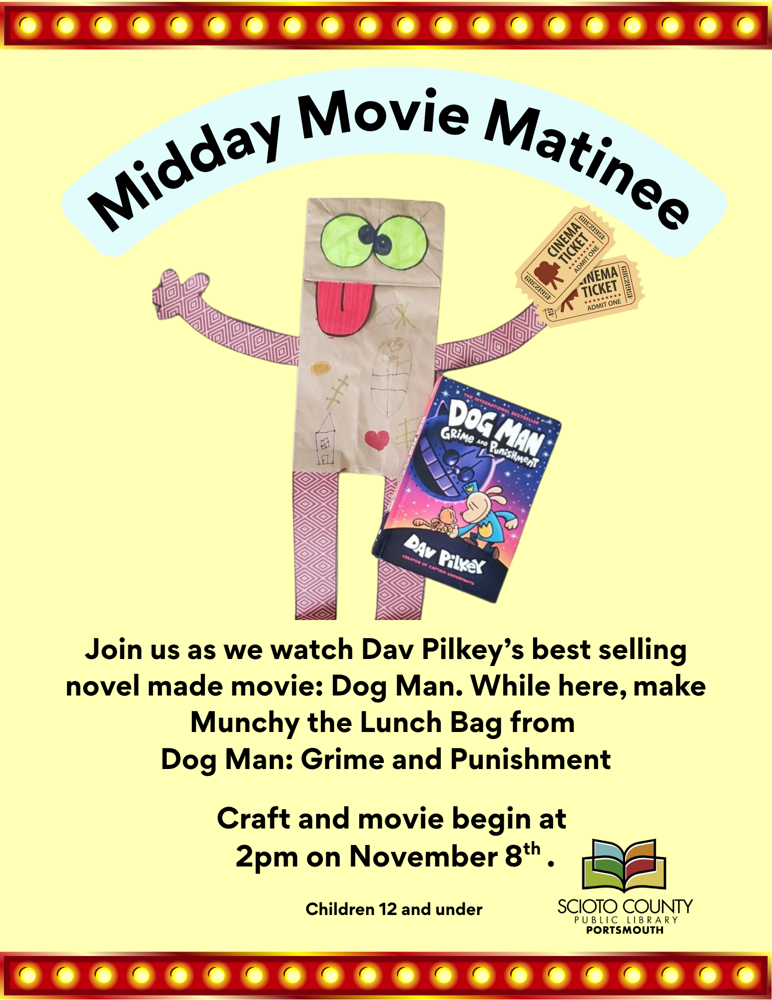 Join us as we watch Dav Pilkey’s best selling novel made movie: Dog Man. While here, make Munchy the Lunch Bag from Dog Man: Grime and Punishment
