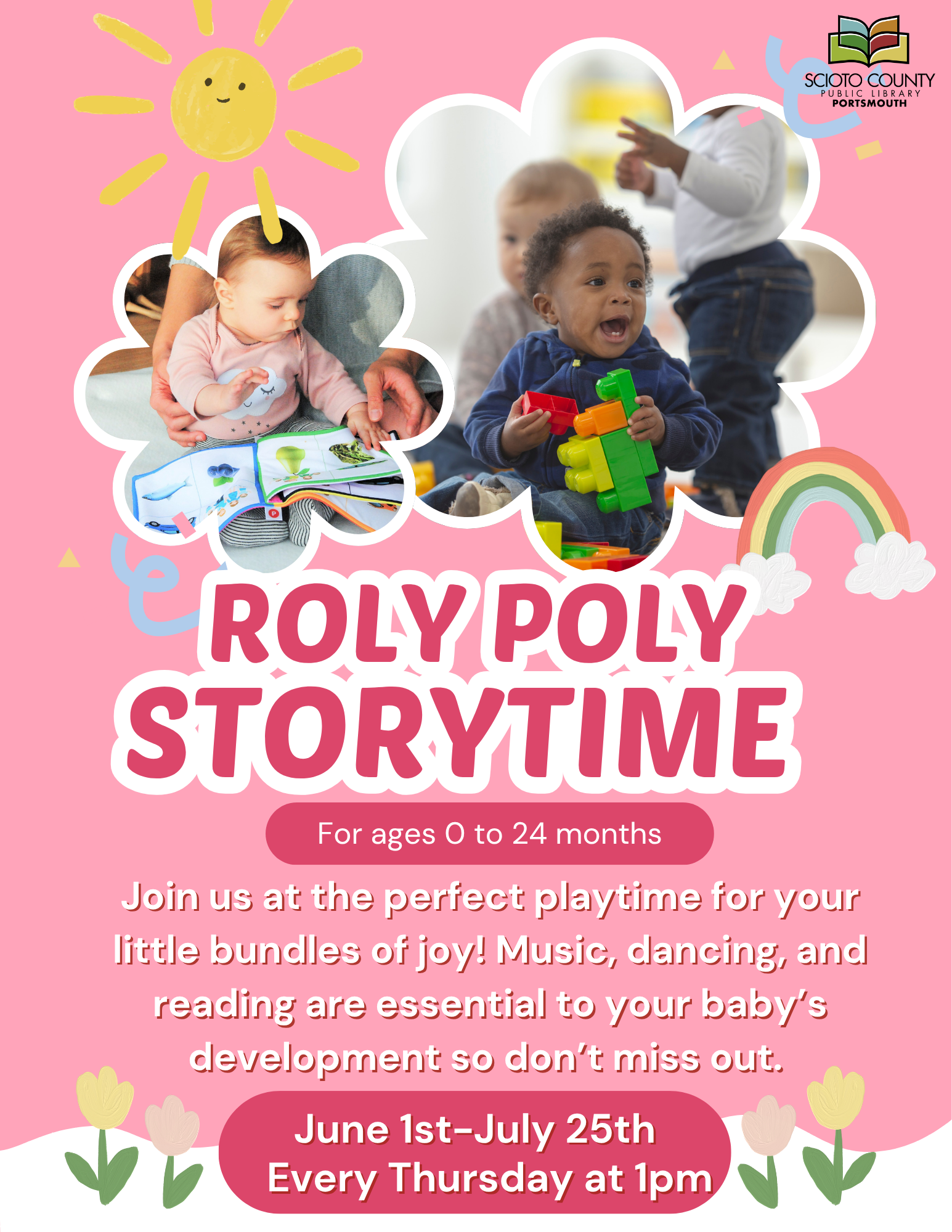 Portsmouth Public Library 1220 Gallia Street, Portsmouth, OH, United StatesJoin us at the perfect playtime for your little bundles of joy! Music, dancing, and reading are essential to your baby’s development so don’t miss out. For ages 0 to 24 months
