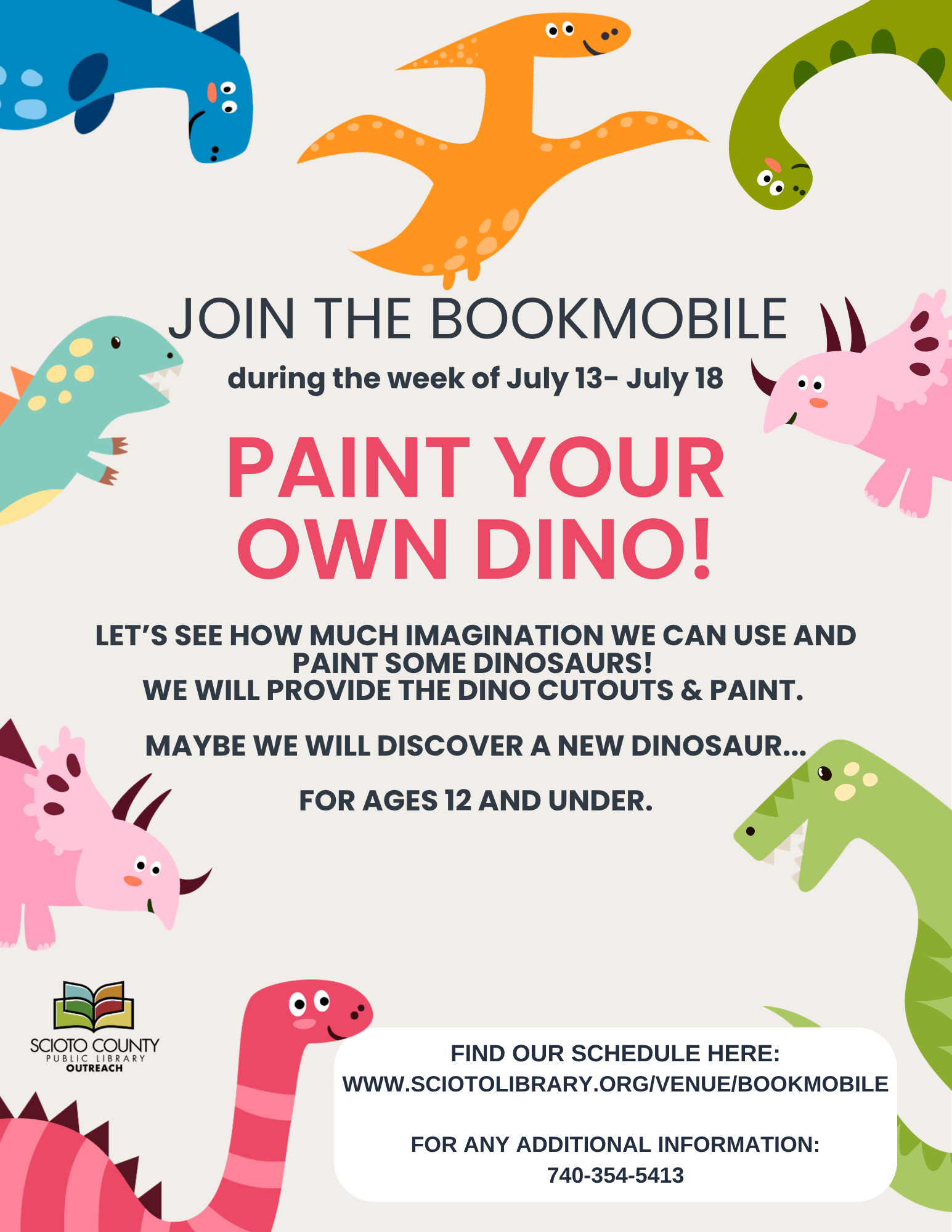 Tweens are invited to the Lucasville Library to craft a dinosaur sun catcher! Choose from 8 different dino-types and make it your own, then enjoy how your new creation looks in the summer sun. This program will take place on Friday, July 10th at 4:30 PM. For more information, call...