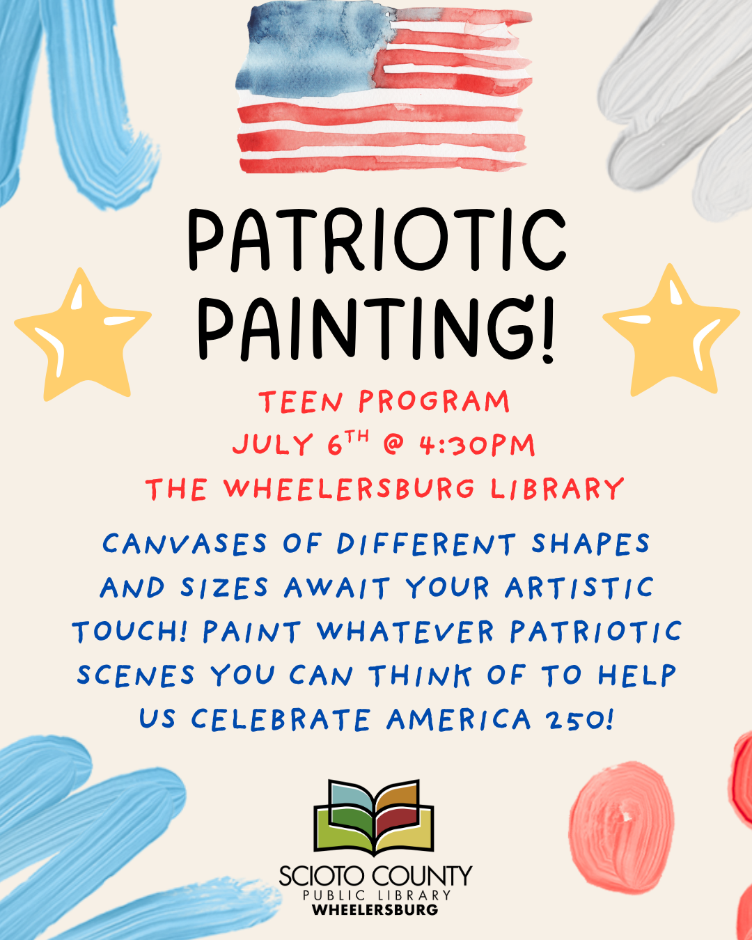 BookmobileJoin us to make an awesome fireworks painting! All you need to bring is a “spark” of imagination! Let’s party like it’s 1776!