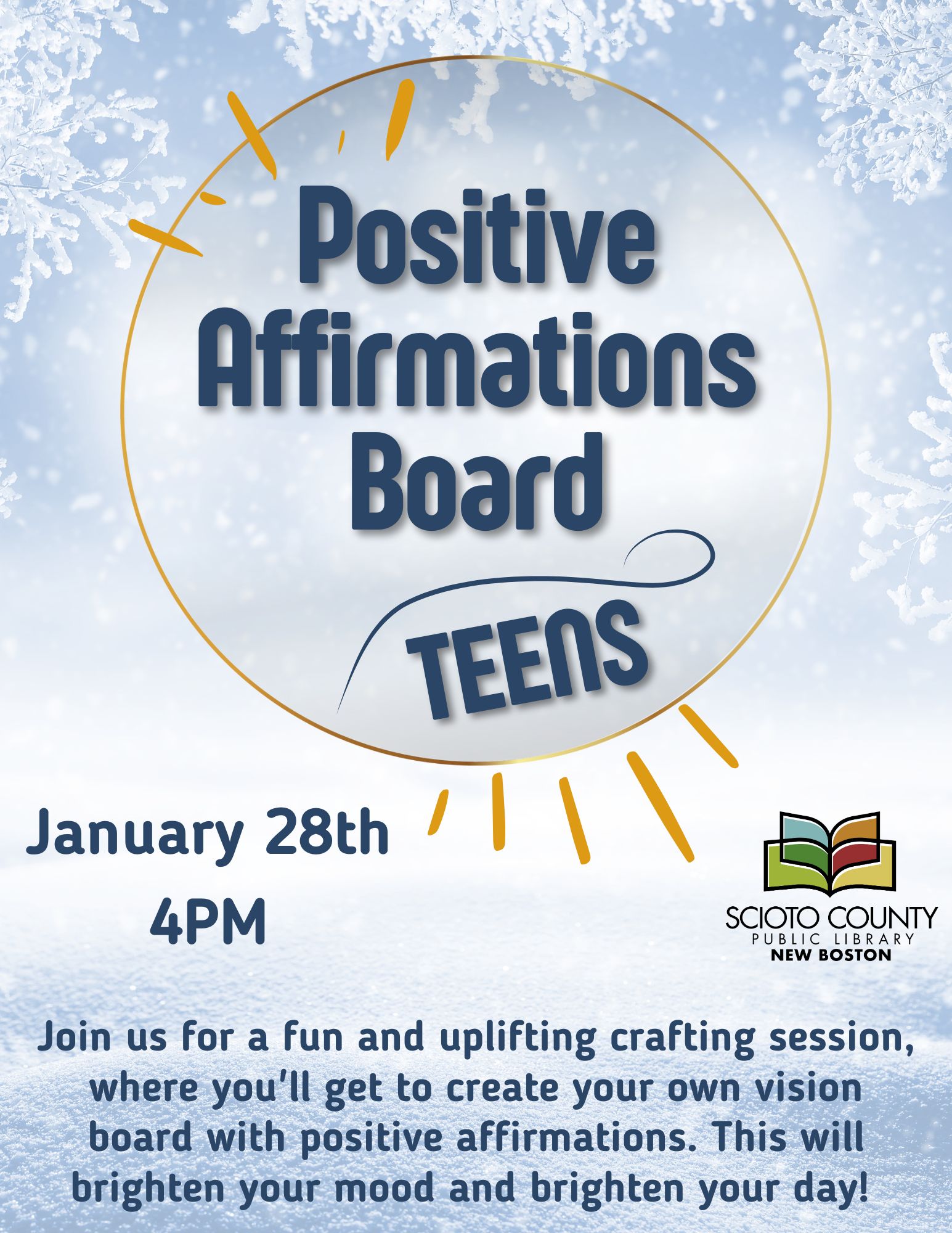 Celebrate the new year by visualizing your goals! Tweens are invited to the Lucasville Library on Friday, January 9th at 4PM to create their own vision boards. For more information, please call us at 740-259-6119.