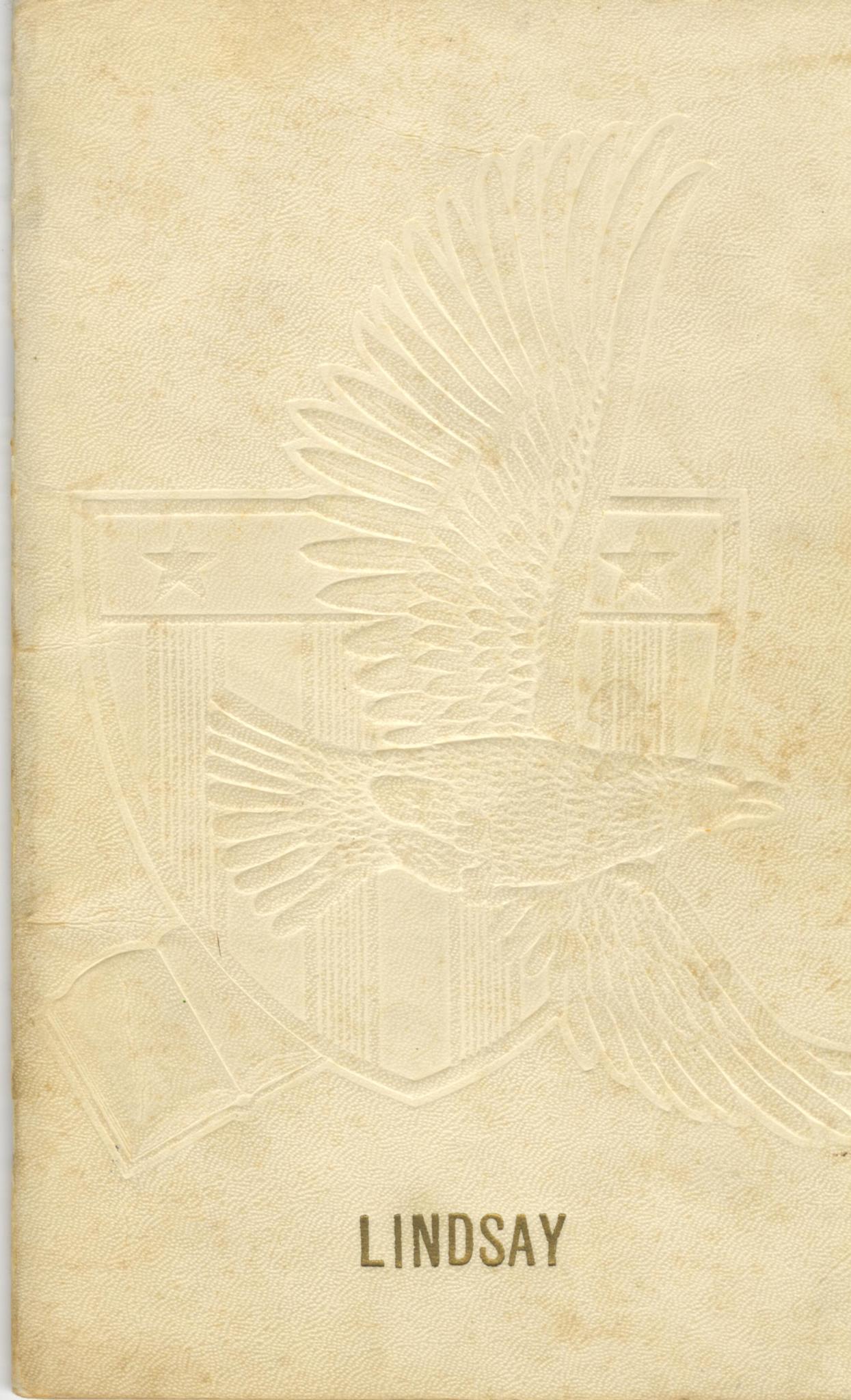 Photo image of an embossed bird and "Lindsay" on a cream colored book cover