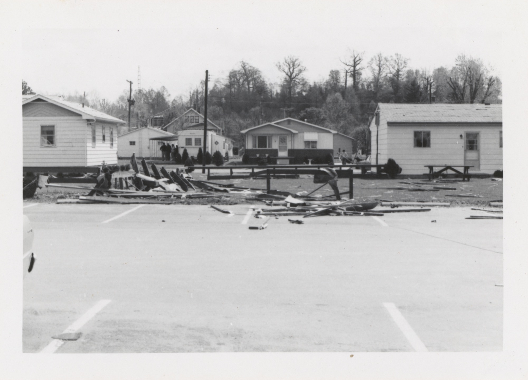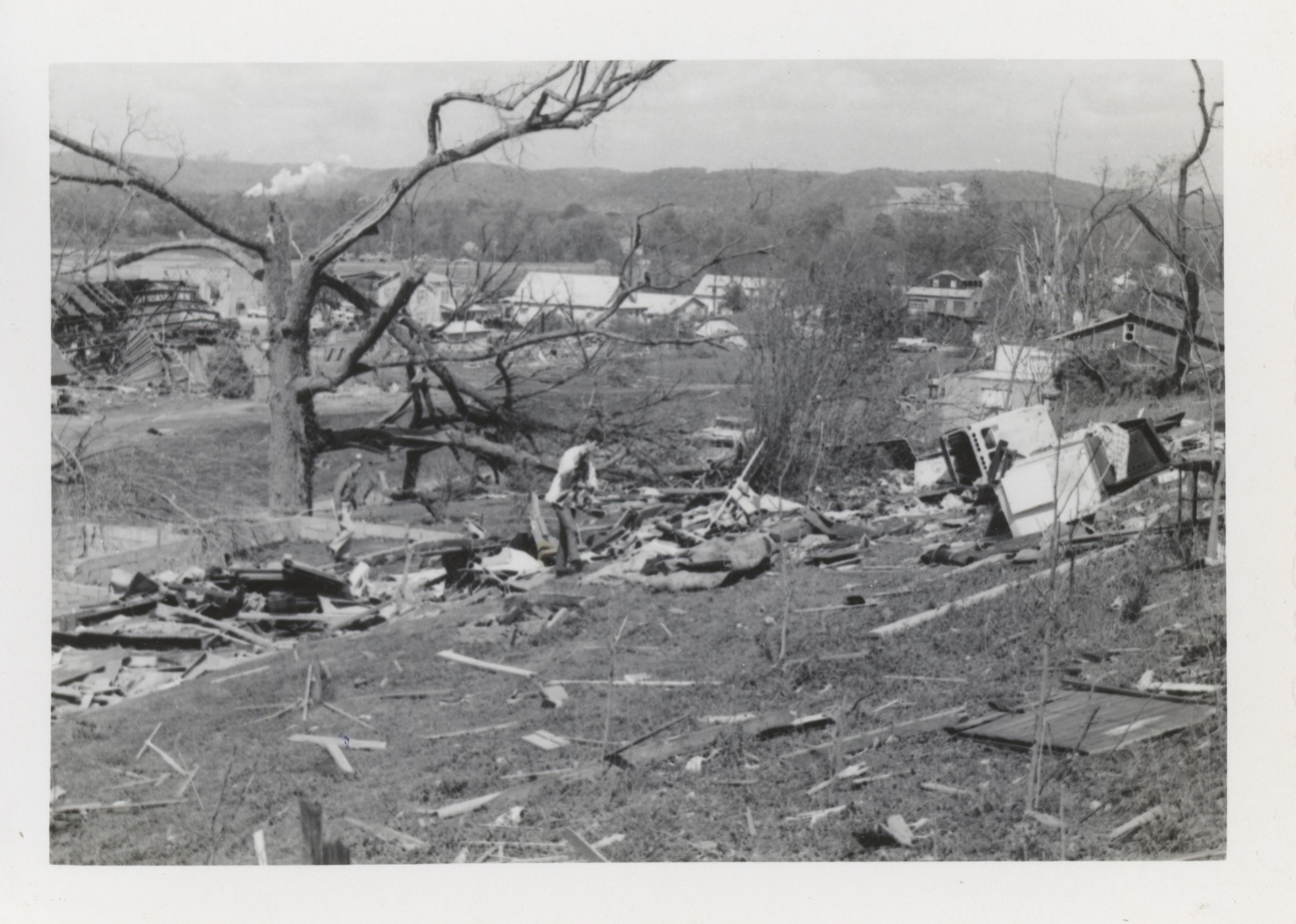 Black and white photo of the aftermath of the Wheelersburg tornado.