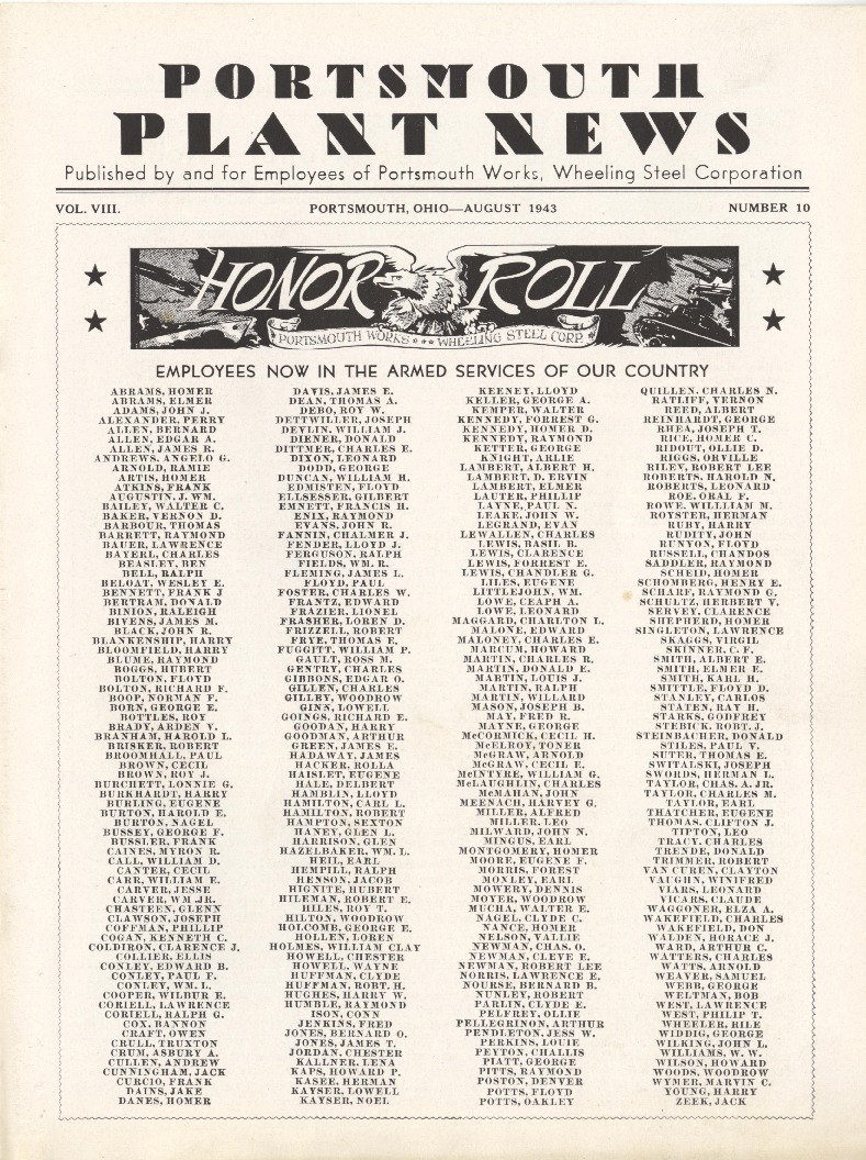 Photo images of 12 pages of the Portsmouth Plant News in August 1943