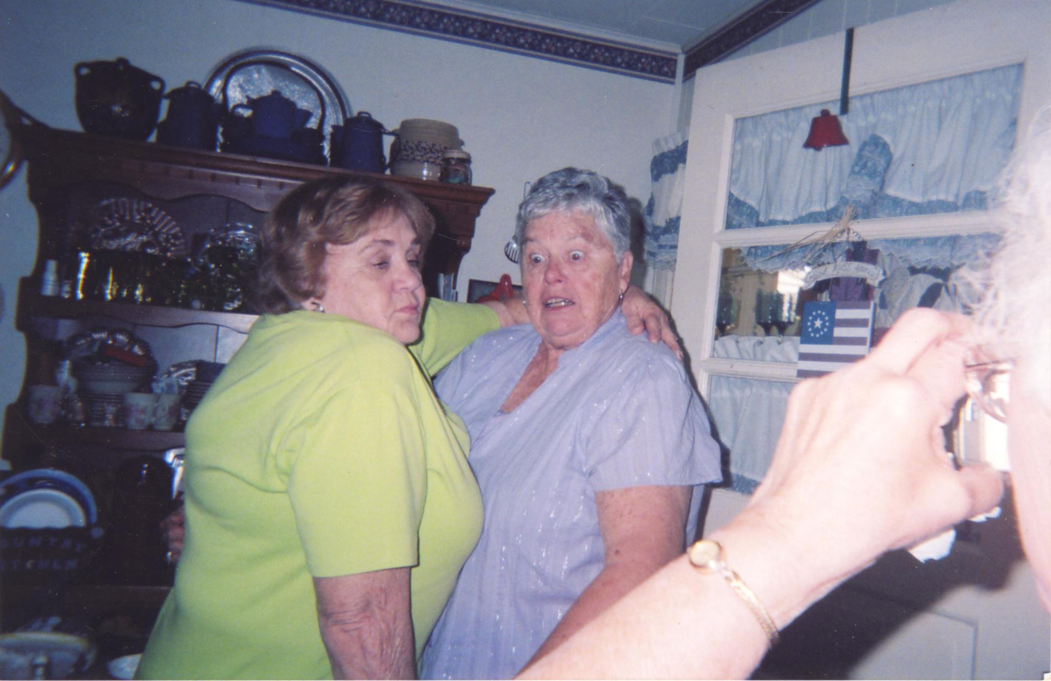Colorized photo image of the 50th Reunion of the McDermott Class of 1947 on July 25, 1997. Pictured from left to right: Meg Scott, Jake Miller, Janet Franklin, Wayne Lanonda, and Geneva Nelson.