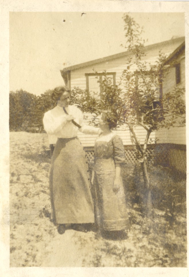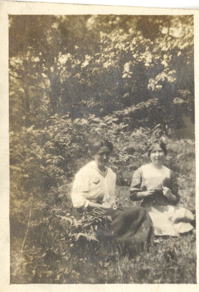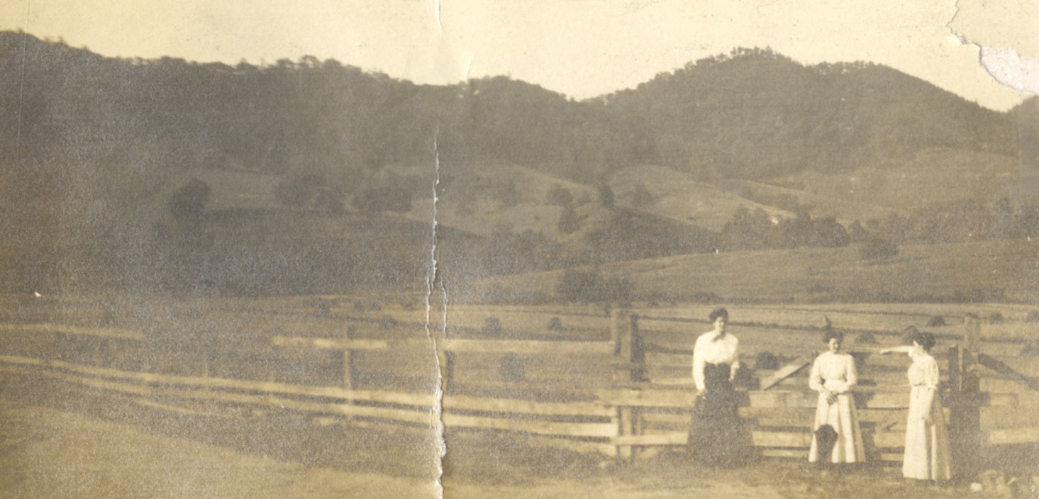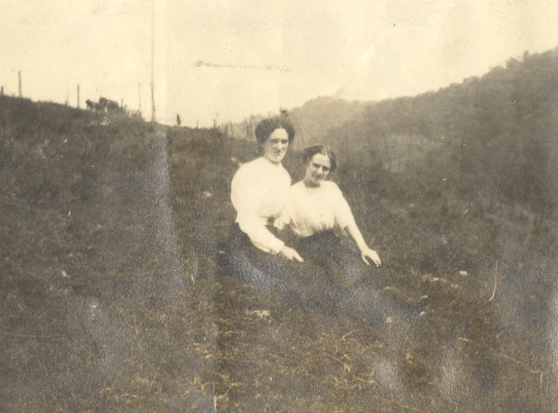 Sepia tone photo of Misses Lloyd, Brown, and Bowers "down in the valley."