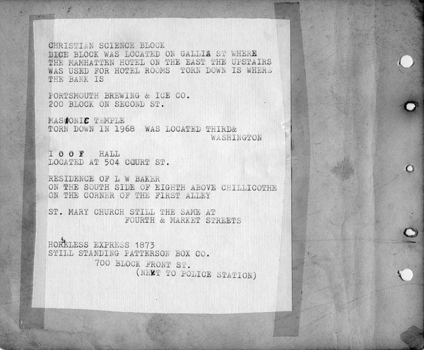 Collection: Portsmouth in 1903, with added typed information dated 1969