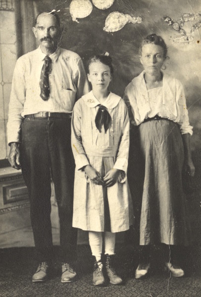 Black and white photo of Sidney Stephenson, Minnie Cooper Stephenson, and Garnet Stephenson Roffe.