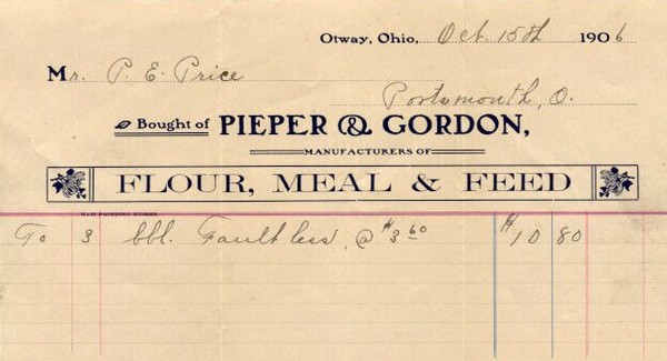 Yellowed paper invoice with tape marks. Black print and cursive. Invoice to "City of Portsmouth, Dept. Hospital, Portsmouth, Ohio." Itemized information on the back in pencil.