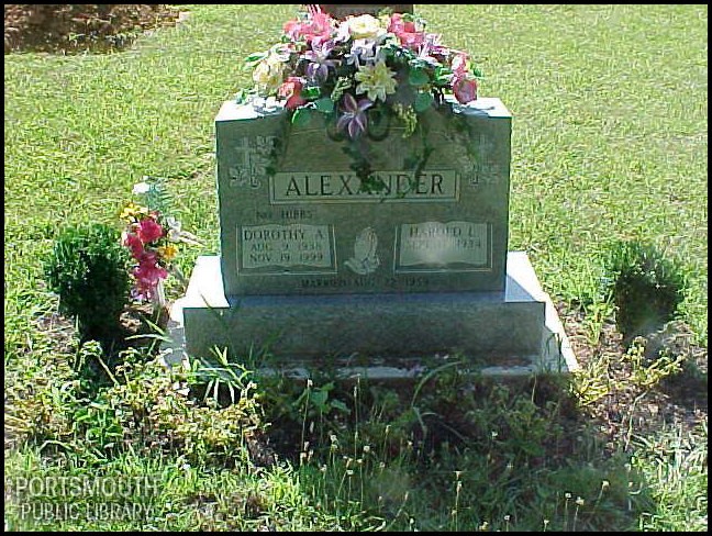 - Photo image of the headstone of Harold and Dorothy Alexander in Mustard Cemetery located in Scioto County.