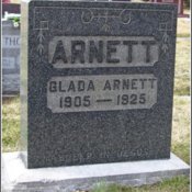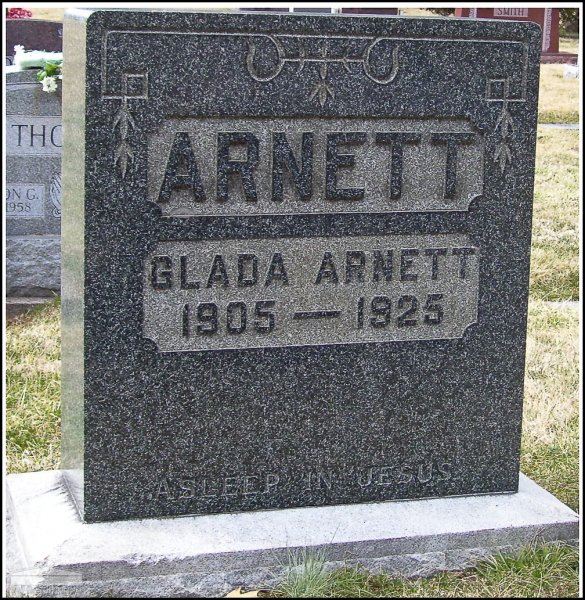 - Photo image of the headstone of Glada Arnett in Scioto Burial Park located in Scioto County.