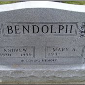 - Photo image of the headstone of Andrew and Mary Bendolph in Scioto Burial Park located in Scioto County.