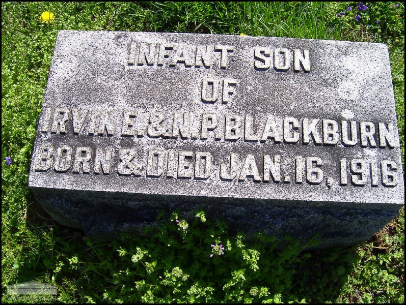 - Photo image of the headstone of Infant Blackburn in Rushtown Cemetery located in Scioto County.