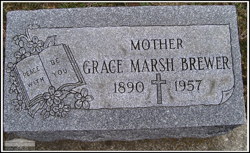 - Photo image of the headstone of Grace Marsh Brewer in Jacktown Cemetery located in Adams County. This cemetery is also known as Jacksonville Cemetery.