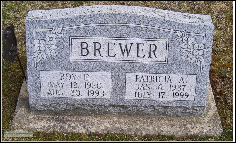 - Photo image of the headstone of Roy and Patricia Brewer in Village Cemetery located in Adams County. This cemetery is also known as Pumpkin Ridge Cemetery.