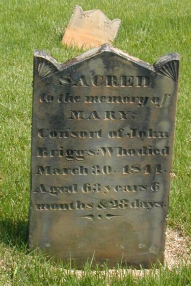- Photo image of the headstone of Mary Briggs in Village Cemetery located in Adams County. This cemetery is also known as Pumpkin Ridge Cemetery.