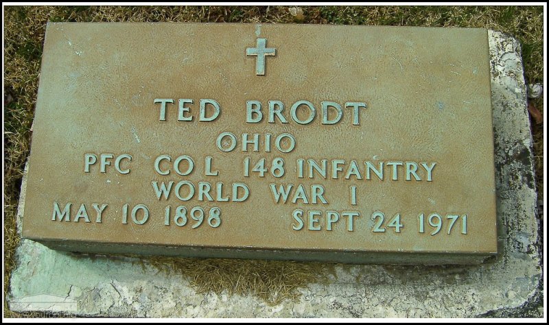 - Photo image of the headstone of Ted Brodt in Village Cemetery located in Adams County. This cemetery is also known as Pumpkin Ridge Cemetery.