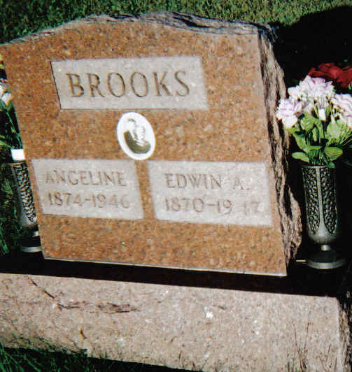 - Photo image of the headstone of Edwin and Angeline Brooks in Moon Cemetery located in Scioto County.