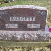 - Photo image of the headstone of Frank and Grace Burgett in Evergreen Cemetery located in Adams County.