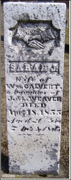 - Photo image of the headstone of Sarah J. Calvert in Prospect Cemetery located in Highland County.