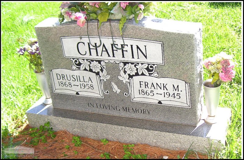 - Photo image of the headstone of Frank and Drusilla Chaffin in Rushtown Cemetery located in Scioto County.